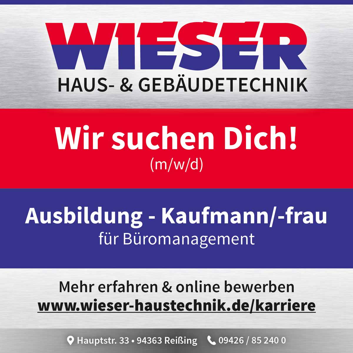 Die Wieser GmbH wächst seit 1989 vom Ein-Mann-Betrieb zum modernen Unternehmen für professionelle Haus- und Gebäudetechnik. Für unser Büro-Team suchen wir motivierte Auszubildende, die Organisationstalent mit Interesse an moderner Haustechnik verbinden möchten.